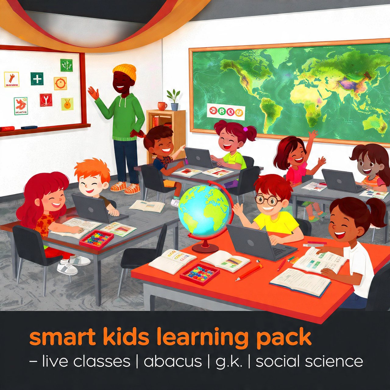 Smart Kids Learning Pack (Live)—a 3-in-1 program with Abacus, G.K., and Social Science.