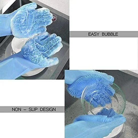 Multipurpose Silicone Cleaning Gloves for dishwashing, kitchen, and household cleaning. Durable, reusable, heat-resistant, and easy to use with built-in scrubbing texture. Free Shipping Available.