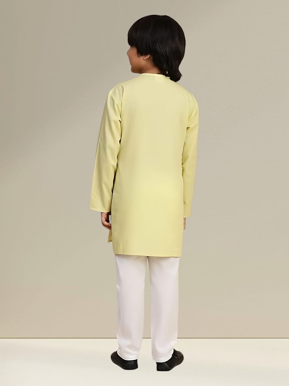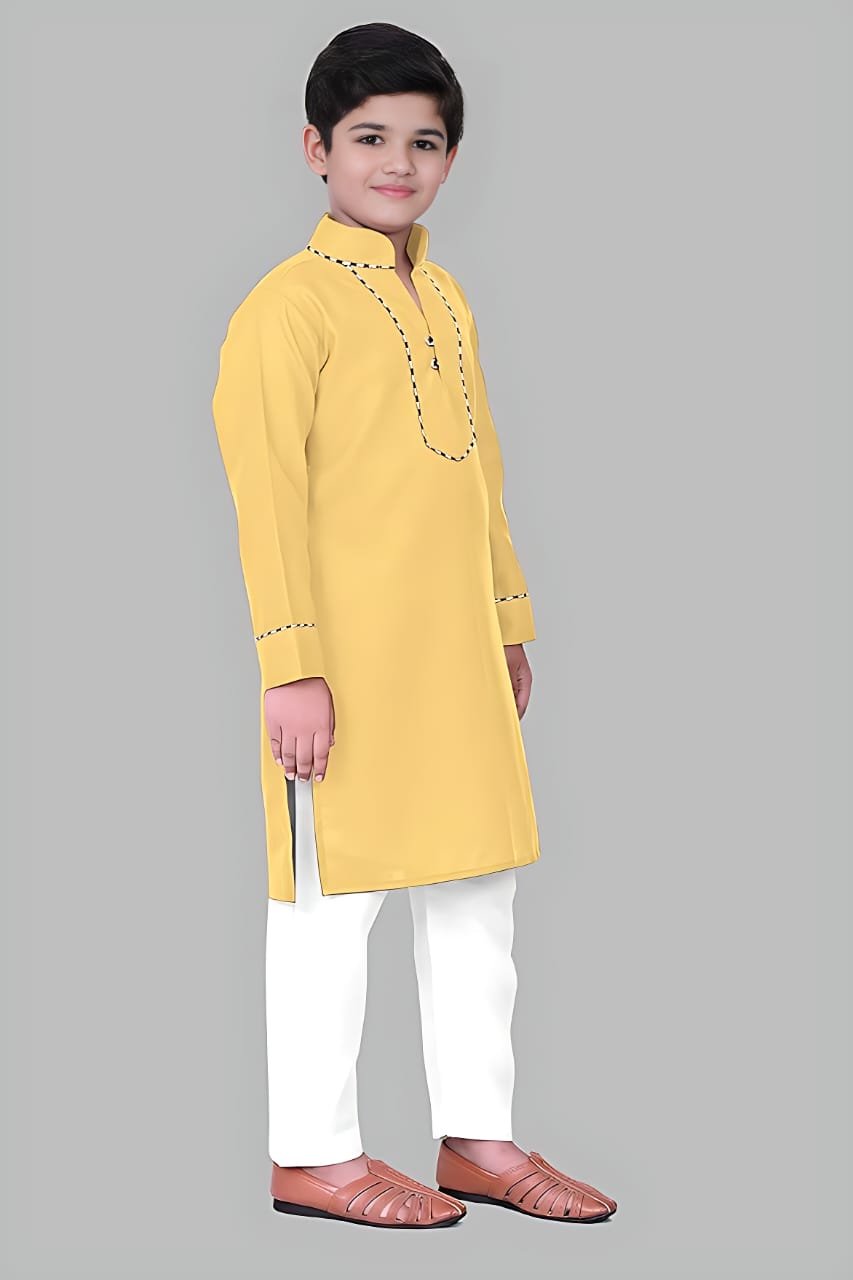 Boys’ Yellow Kurta Pyjama with Straight Collar and Piping Design