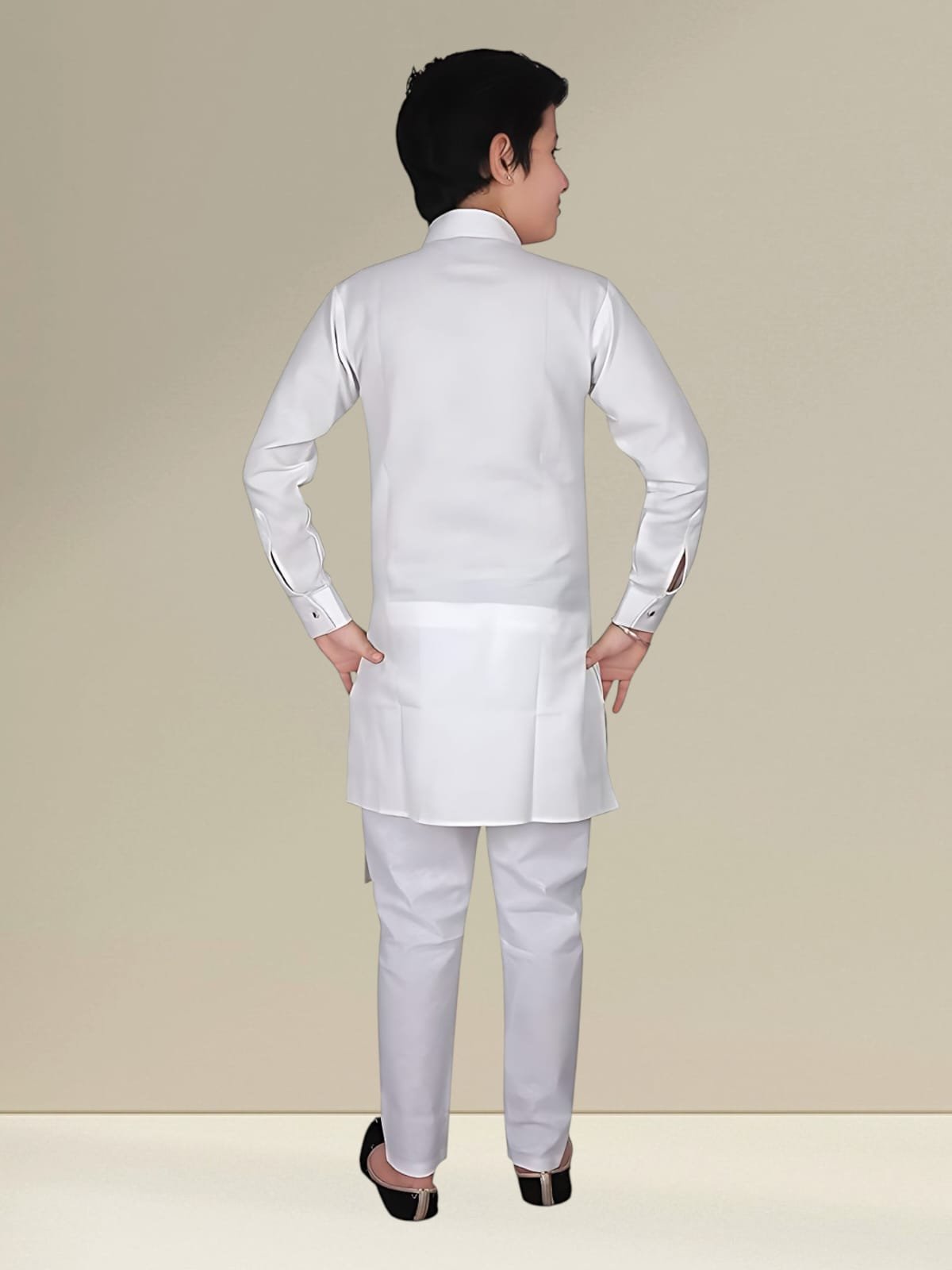 Boys’ White Kurta Pyjama with Straight Collar and Piping Design