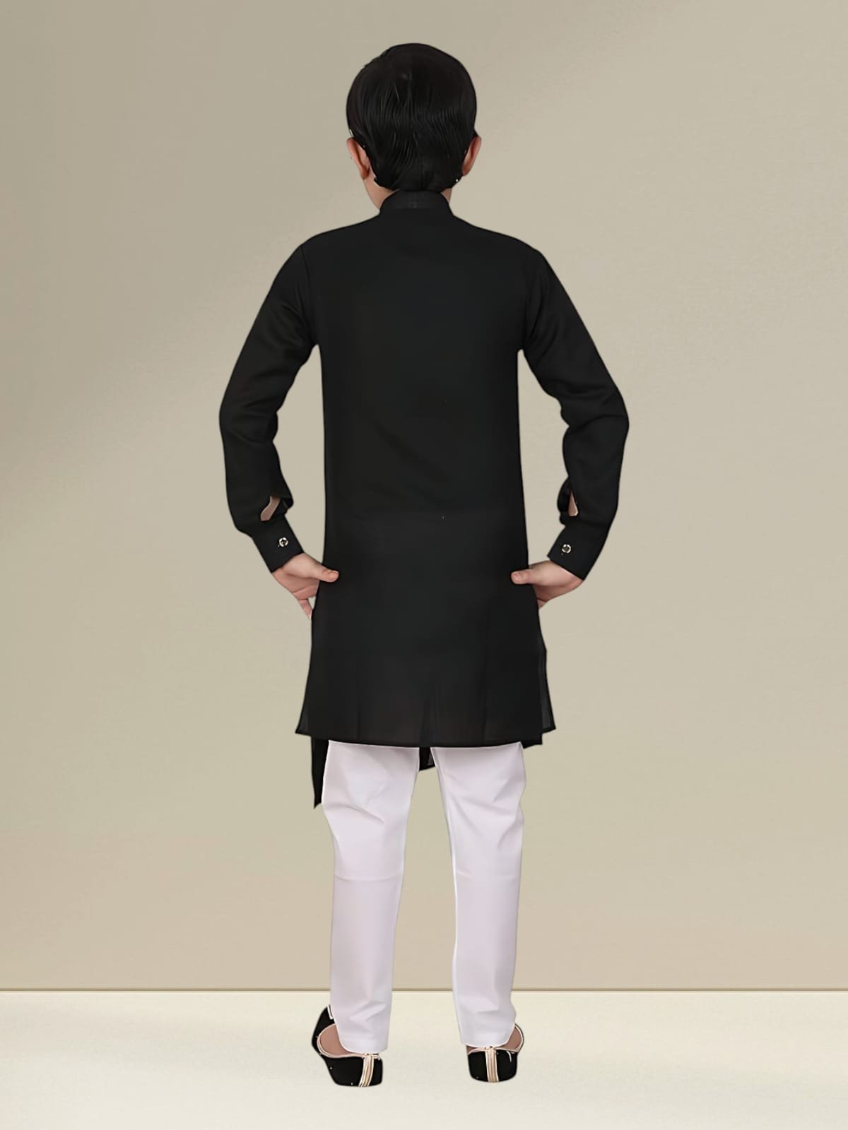 Boys’ Black Kurta Pyjama with Straight Collar and Piping Design