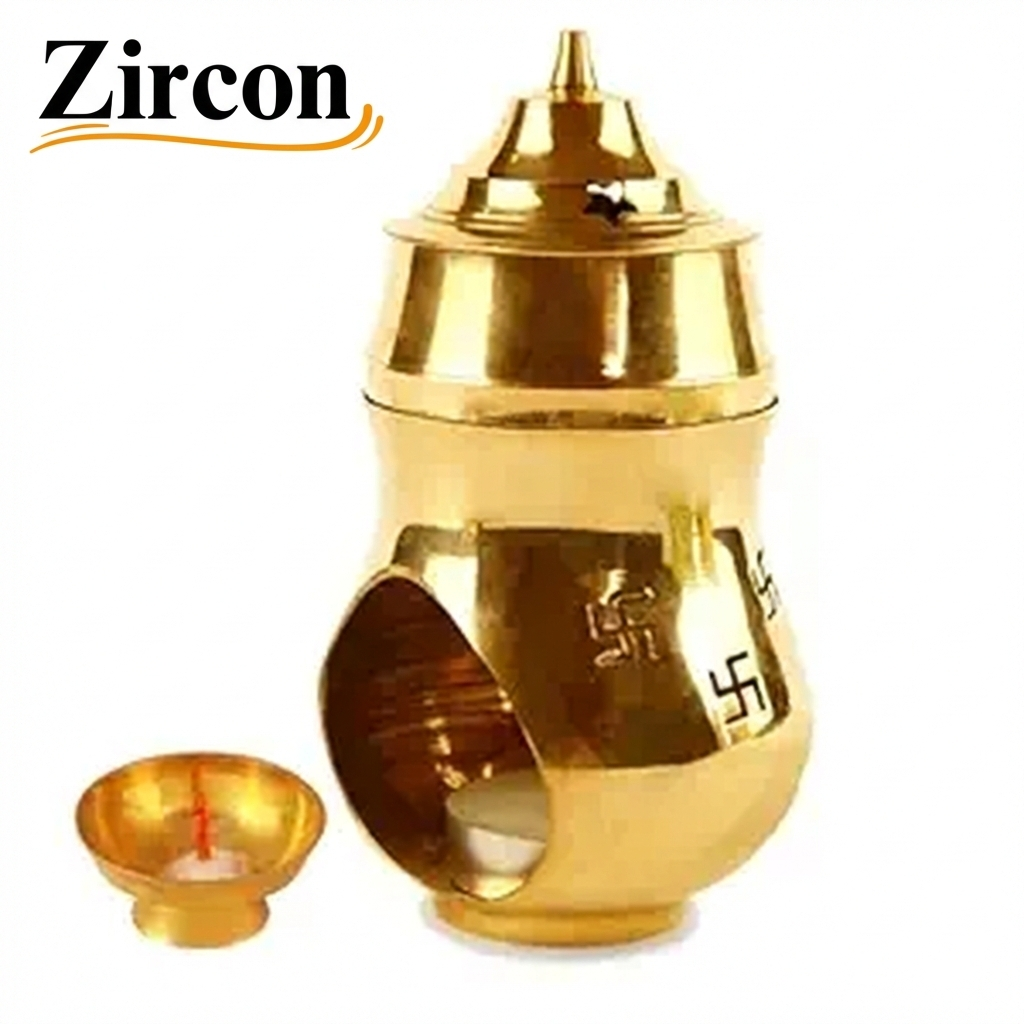 The Brass Kapoor Lamp / Aroma Diffuser / Diya is crafted from premium brass and designed for kapoor burning, aroma diffusion, and pooja rituals. Perfect for creating a peaceful, spiritual atmosphere at home or in the office. Elegant, durable, and auspicious—now available with free home delivery on Zircon E-Shop.