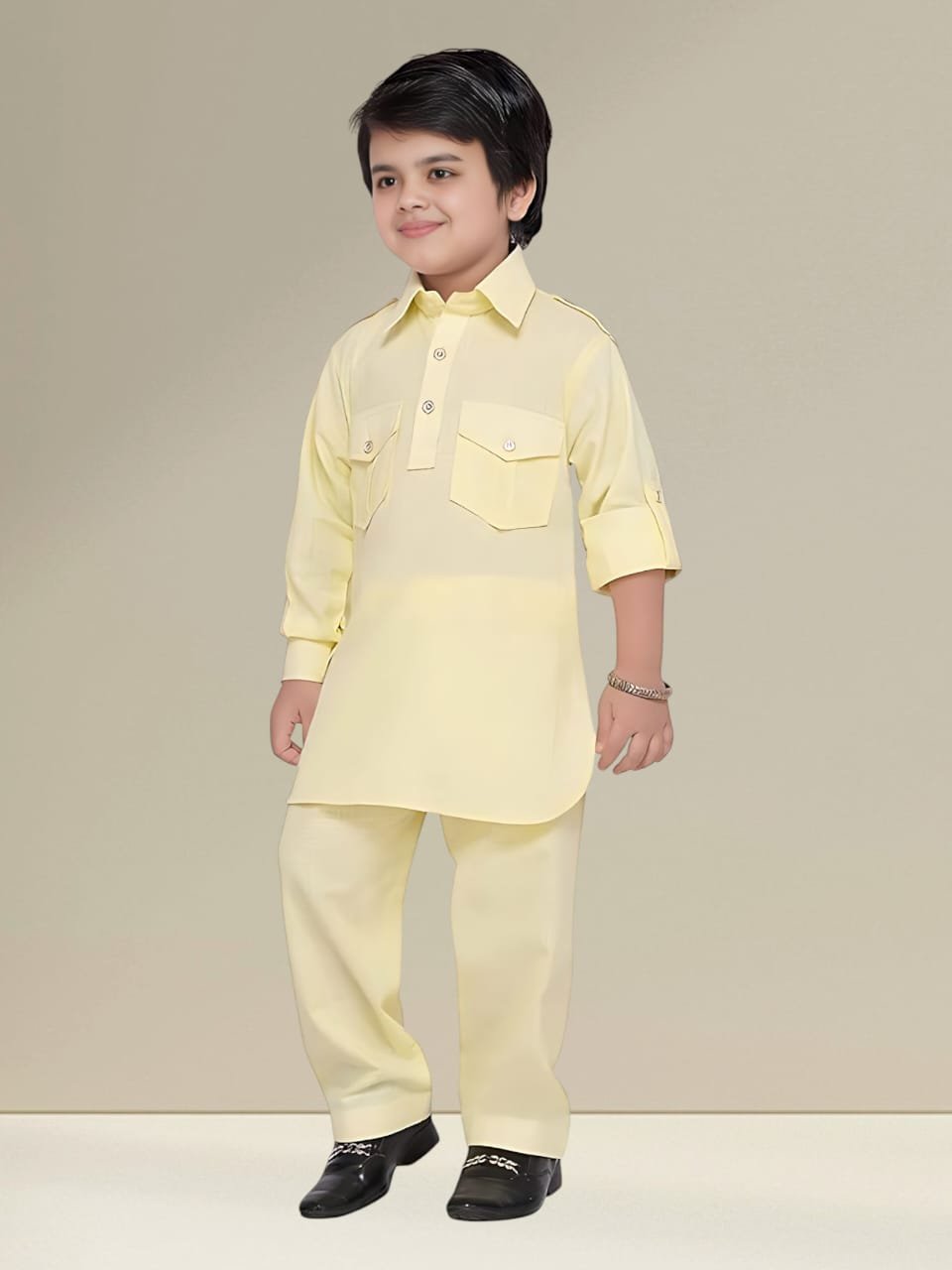 Perfectly tailored for boys aged 1 to 10 years, this kurta pyjama set ensures a flawless fit and smart appearance. Pair it with traditional mojari or sandals for a complete ethnic look that stands out.