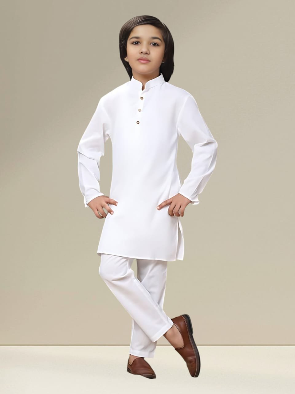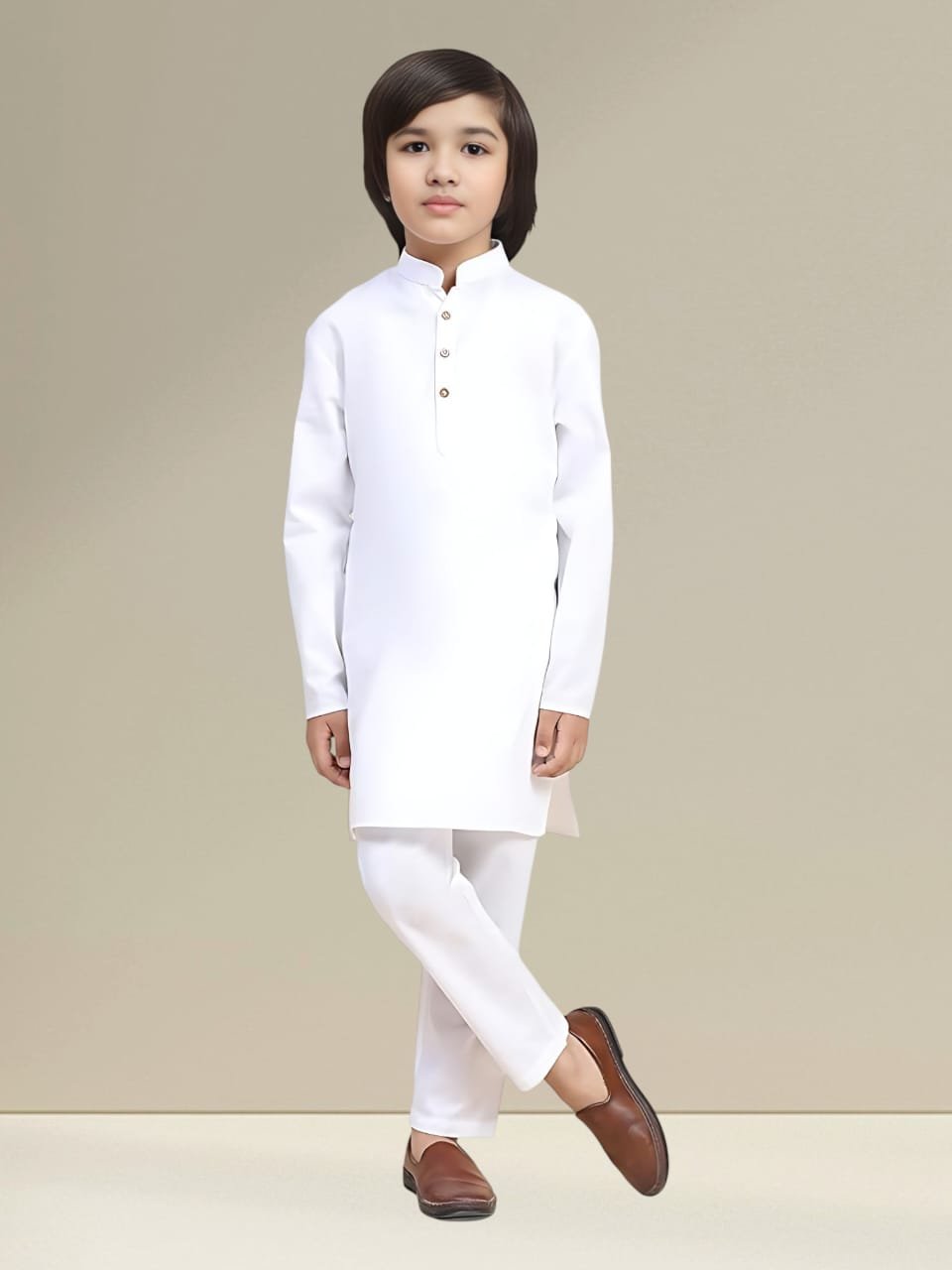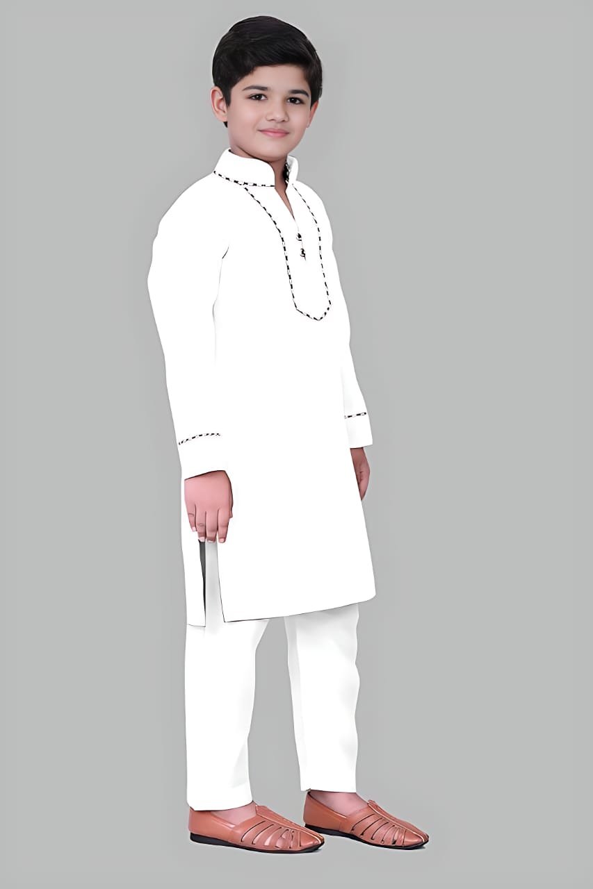 Boys White Kurta Pyjama Set, Cotton Kurta for Kids, Straight Collar Kurta Pyjama, Boys Ethnic Wear India, Kids Traditional Outfit, Boys Party Wear Kurta Pyjama, Kids Cotton Kurta with Piping, Zircon E-Shop Kurta Set.