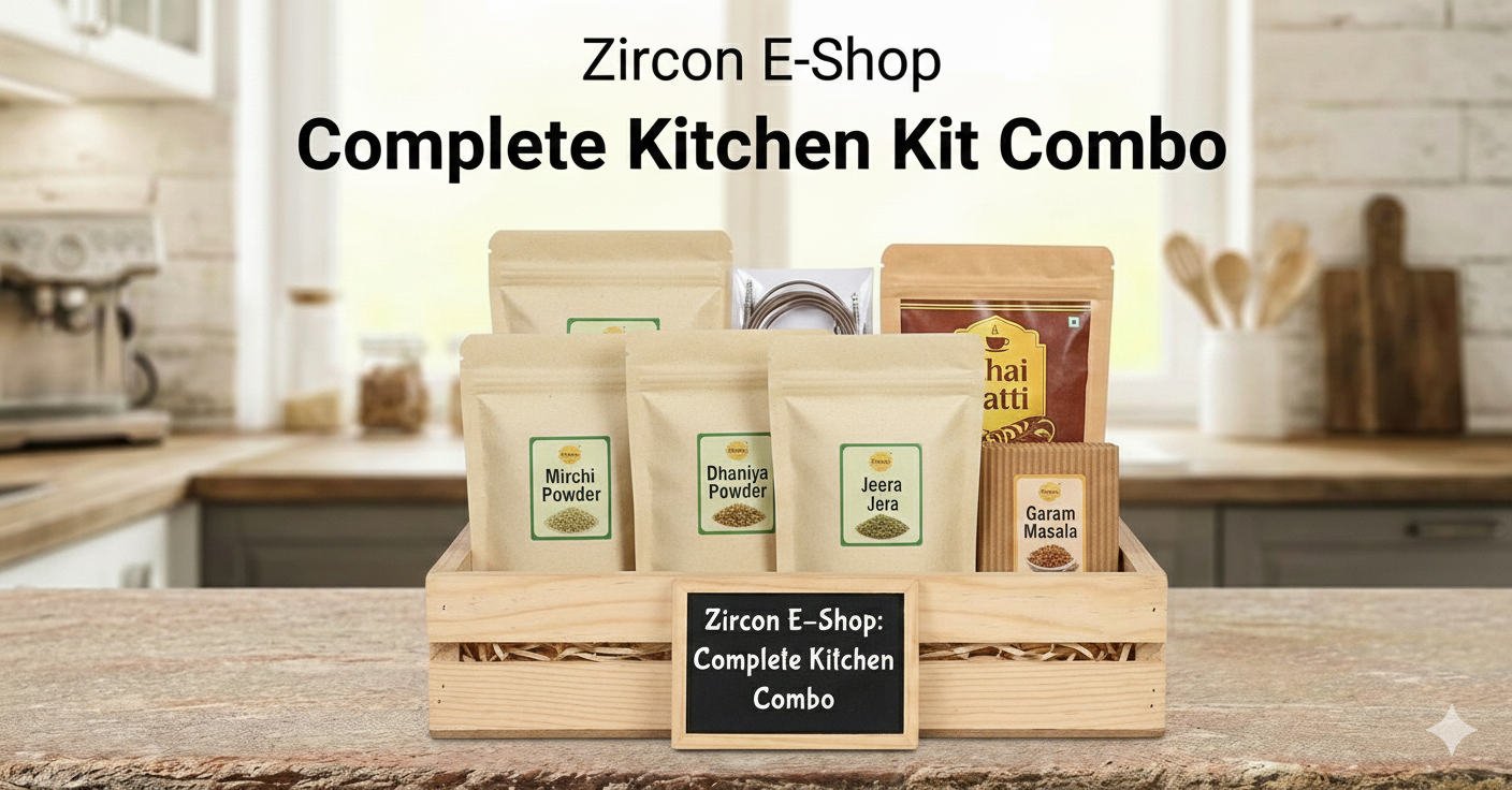 Zircon E-Shop proudly presents the Zircon Pure Kitchen Kit Combo, a thoughtfully curated all-in-one kitchen essentials pack designed to meet everyday household needs. This combo brings together pure spices, premium tea, and a useful utility accessory, making it a perfect choice for homes, gifting, and value purchases.