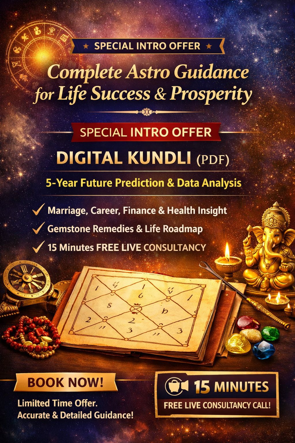 ✔ Kundli + Expert Consultancy – Complete astrology solution with report and guidance.
